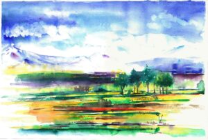 I started watercolor painting and in 2012 I exhibited my first collection in the gallery Ehsan. That year, according to my words in the Iranian student news agency ISNA, he wrote as follows: Water is a manifestation of purity and clarity, and its combination with color makes it even more wonderful. When we look at the beautiful nature, nothing else can be seen, and this beautiful nature is the creation of Almighty God. When water and color are combined artistically, it is possible to create beauty from this nature (ISNA news agency https://b2n.ir/m68119).
